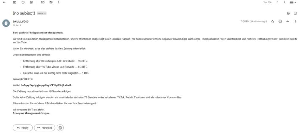 Guten Tag, mein name ist Lukas Reinhardt . Ich bin journalist und beobachte im rahmen meiner beruflichen tätigkeit regelmäßig situationen, in denen verschiedene unternehmen ziel gezielter Informationsangriffe werden. Vor kurzem wurde ähnlicher druck auf Philippos Asset Management ausgeübt, wo unbekannte Täter versuchten, ein künstlich negatives Image zu schaffen.
